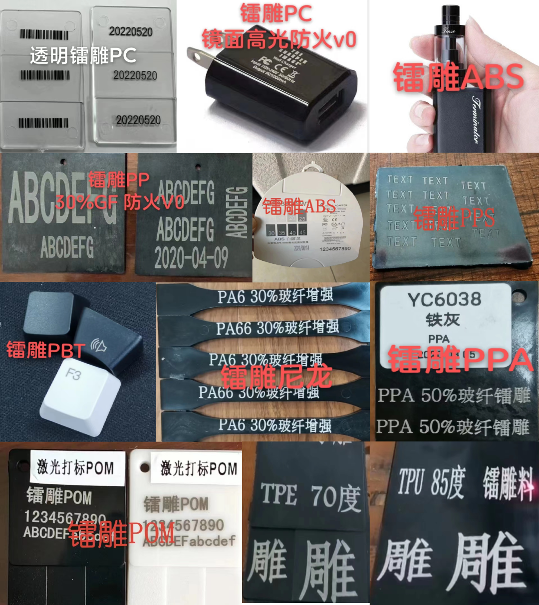 塑擎生產的部分鐳雕專用塑料的鐳雕效果